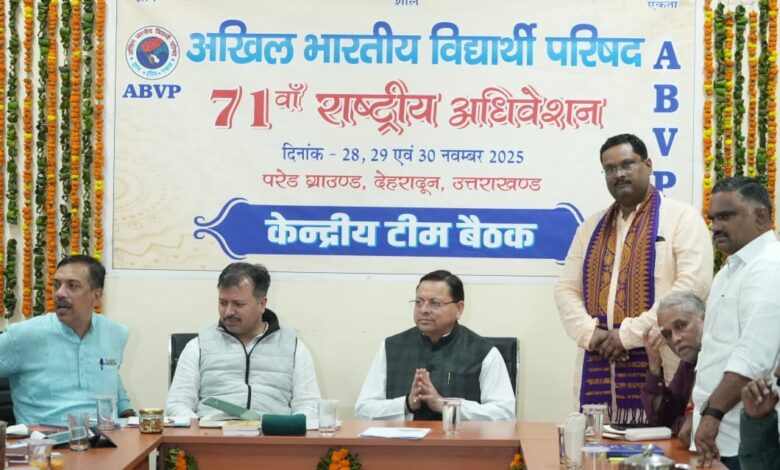 बैठक में मुख्यमंत्री ने अधिवेशन की तैयारियों की विस्तृत जानकारी ली और आयोजन से जुड़ी व्यवस्थाओं की समीक्षा की। उन्होंने कहा कि इस तरह के राष्ट्रीय स्तर के अधिवेशन युवा शक्ति को एक मंच प्रदान करते हैं, जहाँ विचार-विमर्श के माध्यम से राष्ट्र निर्माण की दिशा में ठोस संकल्प लिए जाते हैं। मुख्यमंत्री ने कहा कि एबीवीपी जैसे संगठन देश की युवा ऊर्जा को सकारात्मक दिशा देने में निरंतर अग्रणी भूमिका निभा रहे हैं। उन्होंने अधिवेशन के सफल आयोजन के लिए शुभकामनाएँ देते हुए कहा कि उत्तराखंड की धरती पर आयोजित यह राष्ट्रीय अधिवेशन निश्चित रूप से युवाओं में नए उत्साह, ऊर्जा और देशभक्ति की भावना का संचार करेगा।