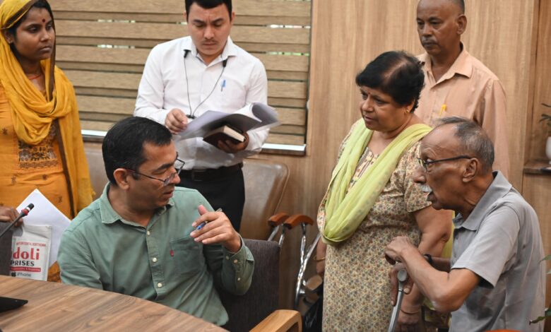 कारगी ग्रांट निवासी 70 वर्षीय बुजुर्ग, दिव्यांग चमन लाल ने भूमि अभिलेखों में नाम होने के बावजूद भी सहखातेदार द्वारा परेशान करने और भूमि पर स्वामित्व न दिए जाने की शिकायत पर एसडीएम को जांच के निर्देश दिए गए। गणेशपुर कारबारी में अवैध तरीके से प्लाटिंग कर सिंचाई नहर को बंद करने से कृषि भूमि की सिंचाई में आ रही समस्या पर तहसीलदार को तत्काल आख्या उपलब्ध कराने को कहा गया। डोईवाला तहसील में एक भूमि संबधी वाद का 2014 से निस्तारण न होने की शिकायत पर एसडीएम को तीन माह के भीतर वाद का प्राथमिकता पर निस्तारण करने के निर्देश दिए गए। सरस्वती जागृति स्वयं सहायता समूह की महिलाओं ने उनकी आईडी का उपयोग कर बिना उनकी जानकारी के कॉपरेटिव बैंक से 5 लाख का ऋण लेने और उसको वापस न करने की शिकायत पर एआर कोऑपरेटिव को तत्काल जांच के निर्देश दिए गए। सर्व माइक्रोफाइनेंस इंडिया एसोसिएशन एवं दून समृद्धि निधि लि0 द्वारा षड्यंत्र कर सदस्यों का पैसा हड़पने की शिकायत पर सभी साक्ष्यों के साथ मजिस्ट्रेट कोर्ट में वाद दायर करने को कहा गया। तपोवन एन्क्लेव निवासी 74 वर्षीय बुजुर्ग ने अपने बेटे पर भरण पोषण के लिए खर्च न दिए जाने और अपनी निजी भूमि का अंश विक्रय के लिए परेशान करने की शिकायत पर एसडीएम सदर को मामले की जांच कर समाधान करने के निर्देश दिए गए। हरबंस वाला निवासी वरिष्ठ नागरिक तिलक सिंह राणा ने बिना पानी का इस्तेमाल किए पानी का भारी भरकम बिल माफ करने के गुहार लगाई। बताया कि उन्होंने मकान बनाने के लिए कनेक्शन लिया था लेकिन अभी तक मकान नही बनाया और ना ही पानी का उपयोग किया है।