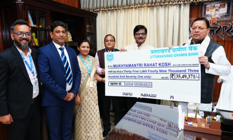 उत्तरांचल ग्रामीण बैंक के प्रतिनिधियों ने सीएम को मुख्यमंत्री राहत कोष के लिए सौंपा 35,49,371 का चेक