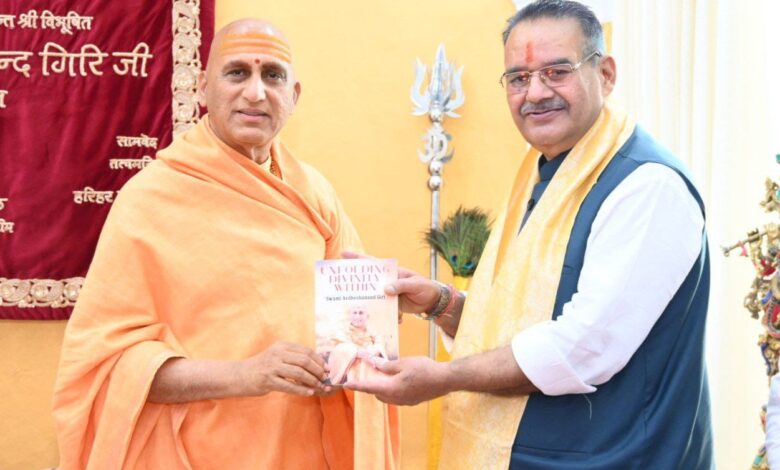 मंत्री गणेश जोशी ने लिया कथा वाचक किशोर जोशी का आशीर्वाद