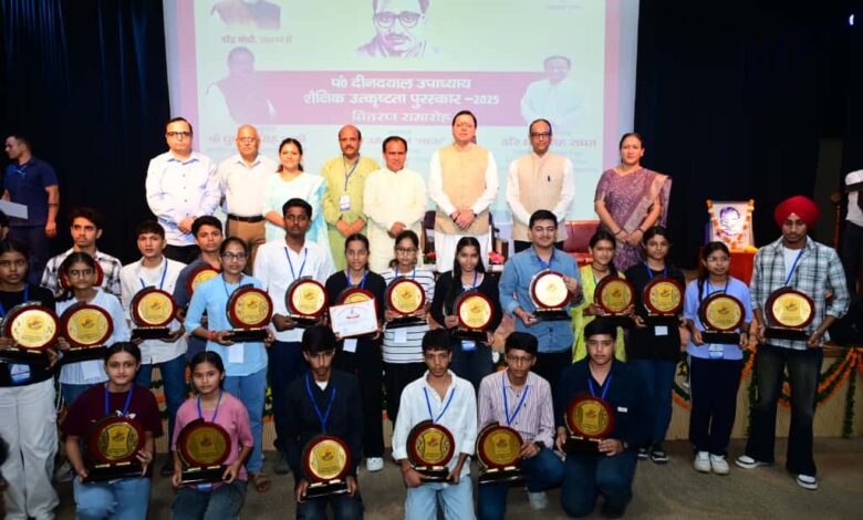 देहरादून,। मुख्यमंत्री पुष्कर सिंह धामी ने गुरुवार को नानूरखेड़ा स्थित एससीईआरटी ऑडिटोरियम में आयोजित पंडित दीनदयाल उपाध्याय शैक्षिक उत्कृष्टता पुरस्कार समारोह में बोर्ड परीक्षाओं में शीर्ष 10 स्थान प्राप्त करने वाले हाईस्कूल एवं इंटरमीडिएट के 75 मेधावी छात्र-छात्राओं को पुरस्कृत किया। इस मौके पर बोर्ड परीक्षाओं में उत्कृष्ट परिणाम देने वाले विद्यालयों के तीन-तीन प्रधानाचार्यों के साथ ही श्रेष्ठ प्रदर्शन करने वाले शीर्ष 50-50 विद्यालयों के प्रधानाचार्यों को भी सम्मानित किया।