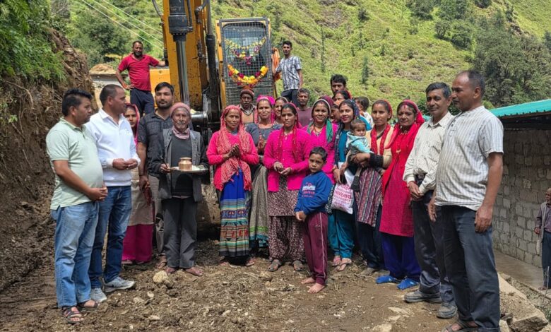 गांव में जेसीबी मशीन के पहुंचने पर ग्रामीणों ने किया स्वागत