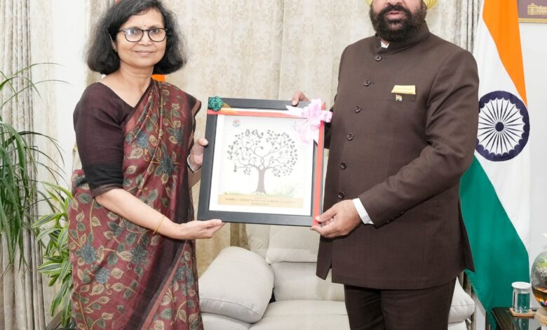देहरादून,। राज्यपाल लेफ्टिनेंट जनरल गुरमीत सिंह (से नि) से गुरुवार को राजभवन में इंदिरा गांधी राष्ट्रीय वन अकादमी, देहरादून की निदेशक भारती ने शिष्टाचार भेंट की। इस अवसर पर श्रीमती भारती ने राज्यपाल को अकादमी में संचालित प्रशिक्षण कार्यक्रमों एवं पर्यावरण संरक्षण संबंधी पहल की जानकारी दी। राज्यपाल ने अकादमी के प्रयासों की सराहना करते हुए वन संरक्षण और जलवायु संतुलन के क्षेत्र में नवाचारों को बढ़ावा देने और जनजारूकता की आवश्यकता पर बल दिया।