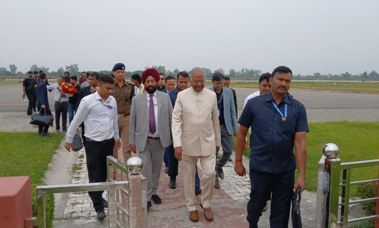 चार दिवसीय कुमाऊं दौरे पर सोमवार को पूर्व राष्ट्रपति रामनाथ कोविंद पंतनगर एयरपोर्ट पहुंचे। इस दौरान एयरपोर्ट में भारी सुरक्षा बल तैनात किया गया। जनप्रतिनिधियों और प्रशासनिक अधिकारियों ने उनका एयरपोर्ट पर स्वागत किया। जिसके बाद पंतनगर कृषि विश्विद्यालय में लंच करने के बाद वह कैंची धाम को रवाना हुए। पूर्व राष्ट्रपति के दौरे को लेकर पुलिस प्रशासन ने सभी तैयारियां पूरी कर ली गई हैं। प्रस्तावित रूट को जगह जगह डायवर्ट किया गया है।