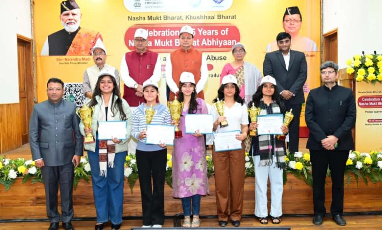 मुख्यमंत्री ने कहा कि आज नशे का प्रसार वैश्विक स्तर पर एक ‘साइलेंट वॉर’ की तरह हो रहा है, जिसका सबसे बड़ा निशाना हमारी युवा शक्ति है। उन्होंने कहा कि हमारी युवा पीढ़ी ही नए भारत की ऊर्जा, नवाचार, सामर्थ्य और प्रगति का वास्तविक आधार है। यदि यही ऊर्जा किसी नकारात्मक प्रभाव में फँस जाएगी, तो राष्ट्र के विकास की गति भी अवरुद्ध हो जाएगी। इसीलिए प्रधानमंत्री नरेंद्र मोदी ने वर्ष 2020 में स्वतंत्रता दिवस के अवसर पर नशा मुक्त भारत अभियान की शुरुआत कर पूरे देश से इस सामाजिक बुराई के विरुद्ध एकजुट होने का आह्वान किया और इसे एक व्यापक जनकृआंदोलन का स्वरूप प्रदान किया। मुख्यमंत्री ने कहा कि उत्तराखंड की गौरवशाली पहचान “ऐपण कला” को भी इस अभियान से जोड़ा गया है, आज नशाकृविरोधी संदेशों से सुसज्जित ट्टऐपण’ पेंटिंग्स हमारे शैक्षणिक संस्थानों और सार्वजनिक स्थलों की शोभा बढ़ा रही हैं। साथ ही युवाओं को नशे से दूर रखने और उनकी ऊर्जा को सकारात्मक दिशा देने के लिए राज्य में ट्टदगडिया क्लब’ भी बनाए हैं। मुख्यमंत्री धामी ने प्रदेश के युवाओं से अपील करते हुए कहा कि वे स्वयं भी नशे को पूरी मजबूती के साथ ट्टन’ कहें और अपने साथियों को भी नशे के लिए “न’’ कहने के लिए प्रेरित करें। उन्होंने कहा कि सरकार उत्तराखंड को देश का अग्रणी राज्य बनाने के लिए अपने विकल्प रहित संकल्प के साथ निरंतर कार्य कर रही है। परन्तु ये संकल्प तभी सिद्ध हो सकता है, जब हमारी युवा पीढ़ी अपनी पूरी ऊर्जा, क्षमता और दृढ़ संकल्प के साथ हमारा सहयोग करे और नशे जैसी बुराइयों से स्वयं भी दूर रहे तथा दूसरों को भी दूर रखने का संकल्प ले। मुख्यमंत्री धामी ने उपस्थित युवाओं को नशा मुक्त भारत अभियान की शपथ भी दिलाई, साथ ही स्कूल कॉलेजों में राज्य स्तर पर आयोजित भाषण एवं निंबध प्रतियोगिता के विजेताओं को भी सम्मानित किया। कार्यक्रम में कैबिनेट मंत्री गणेश जोशी, विधायक सविता कपूर, उत्तराखंड अन्य पिछड़ा वर्ग आयोग के अध्यक्ष संजय नेगी, सचिव समाज कल्याण डॉ श्रीधर बाबू अघांकी, अपर पुलिस महानिदेशक डॉ वी मुरुगेशन, निदेशक समाज कल्याण डॉ संदीप तिवारी एवं अन्य गणमान्य उपस्थित रहे।